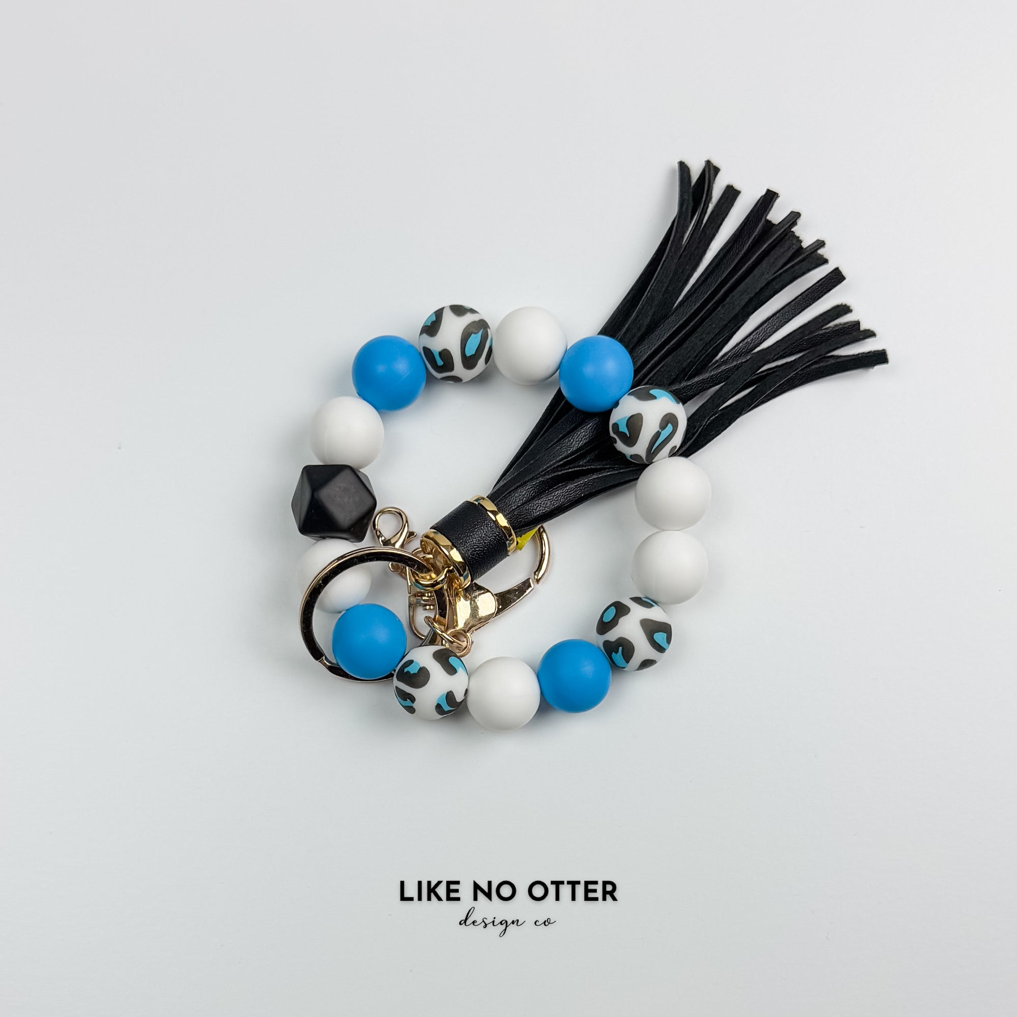 White & Blue Leopard Print Silicone Wristlet