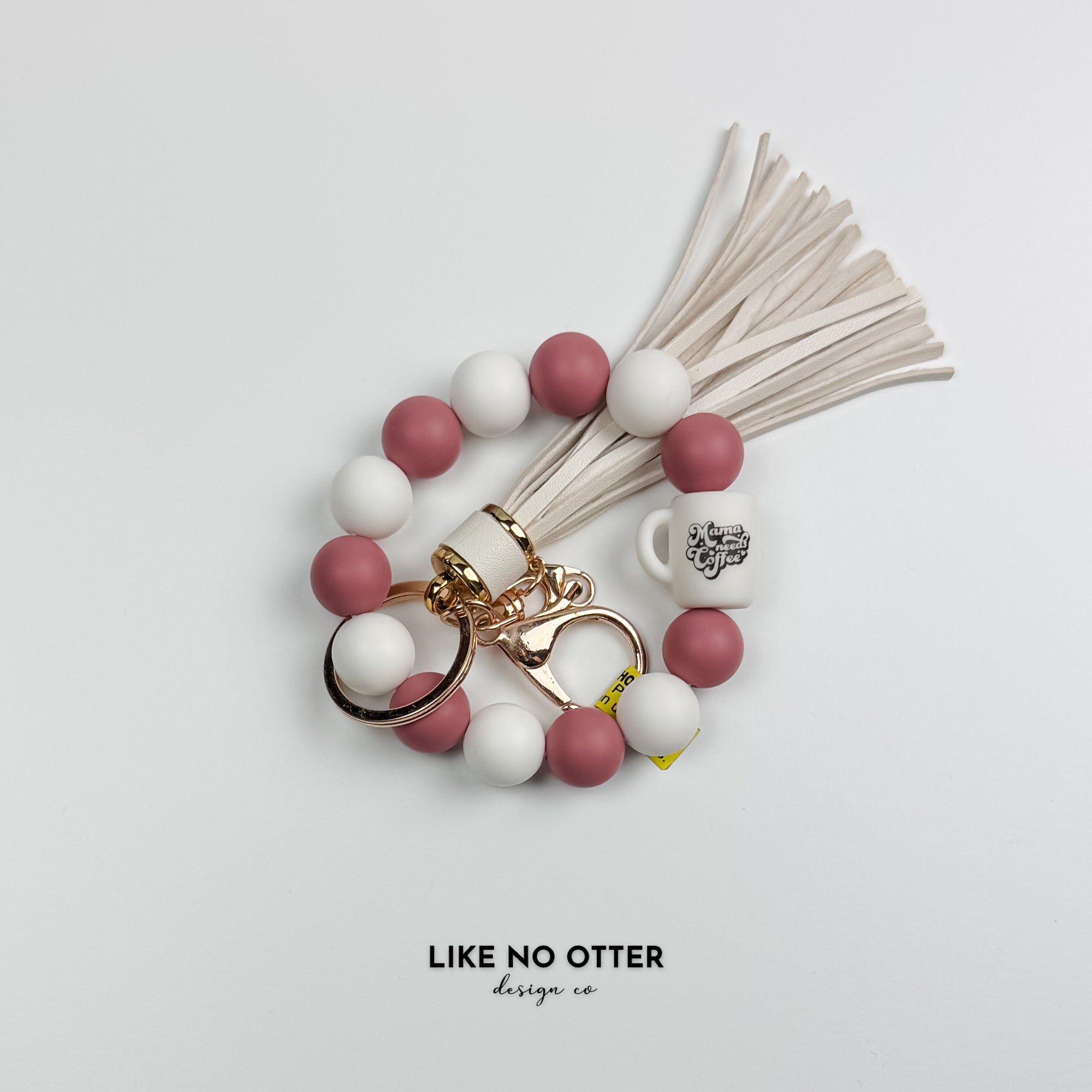 White & Mauve Mama Needs Coffee Silicone Wristlet