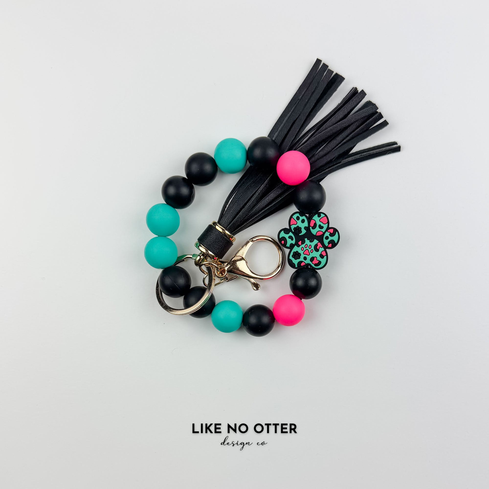 Teal, Black & Pink Paw Print Silicone Wristlet
