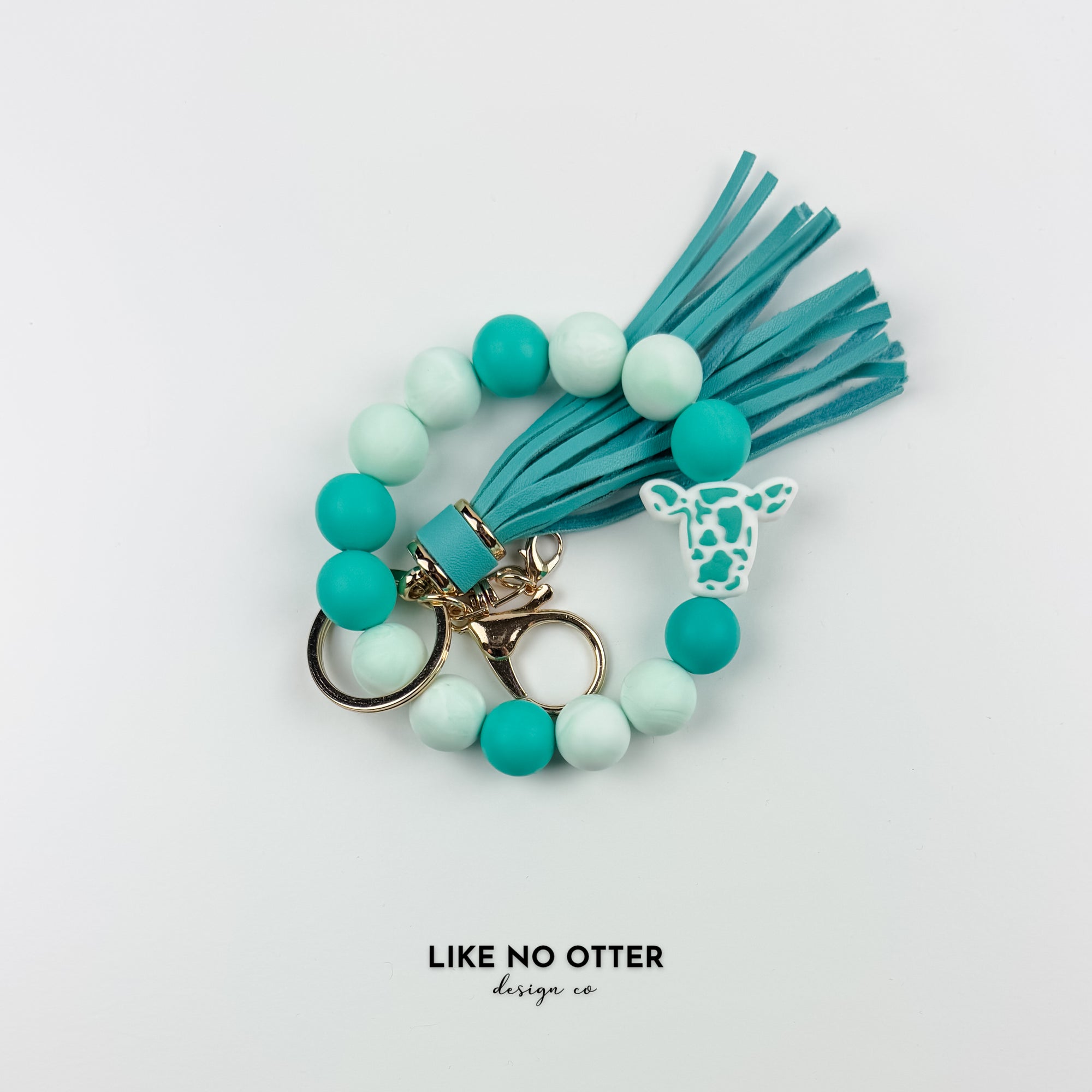 Teal & Marble Cow Print Head Silicone Wristlet