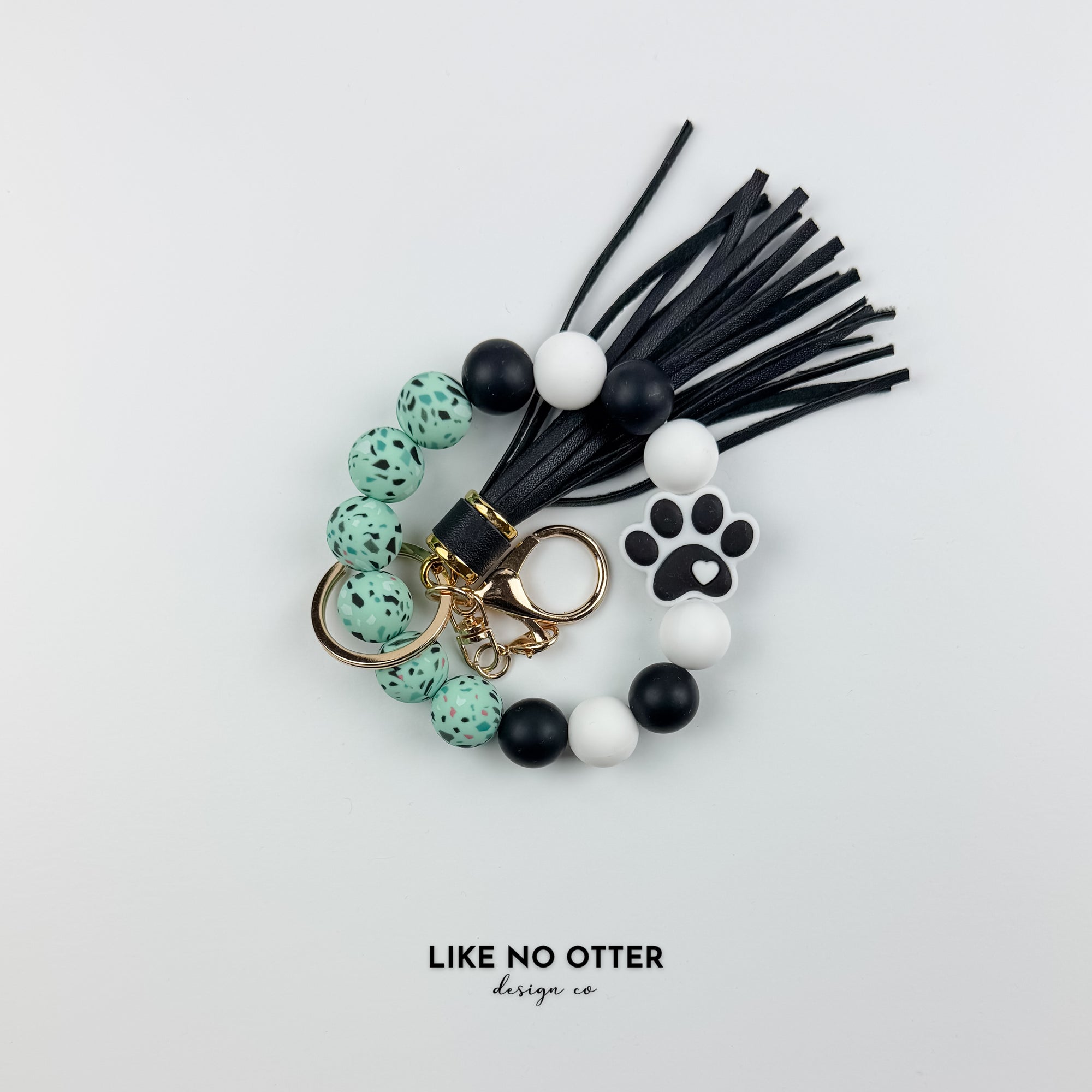 Teal Speckle & Black Paw Print Silicone Wristlet