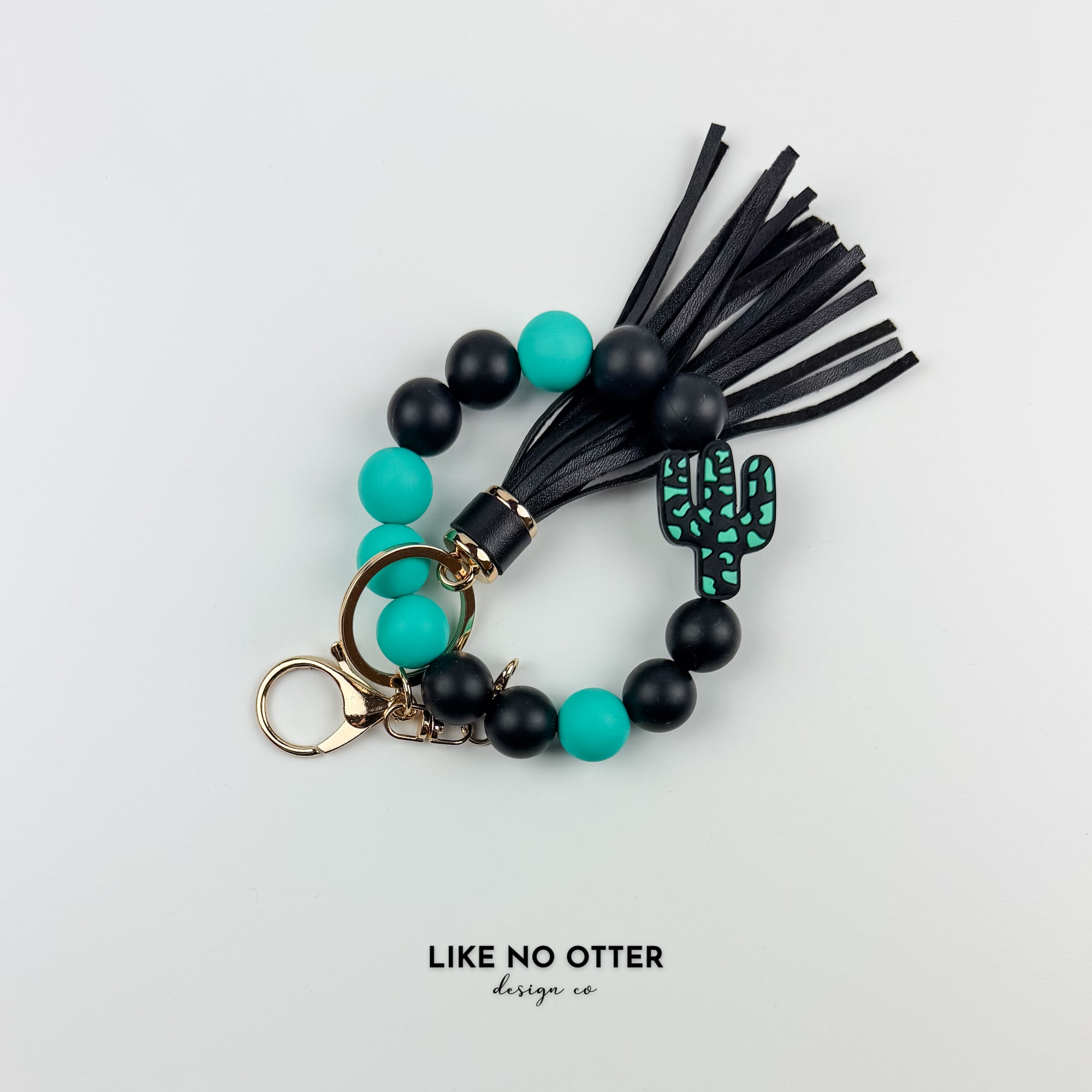 Teal & Black Cactus Silicone Wristlet